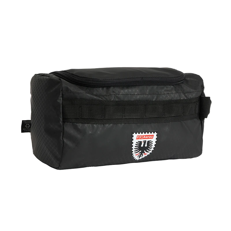 Die gepolsterte FC Aarau Kulturtasche aus hochwertigem rezykliertem PET ist dein idealer Begleiter für Training, Matchtage oder Reisen. Dank cleverer Aufteilung mit Netzfächern, Reissverschluss Innentasche und einem funktionalen Schlaufenband behältst du jederzeit den Überblick. Die Tasche lässt sich flexibel aufstellen oder aufhängen – perfekt für unterwegs.