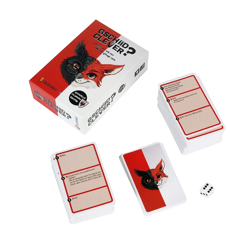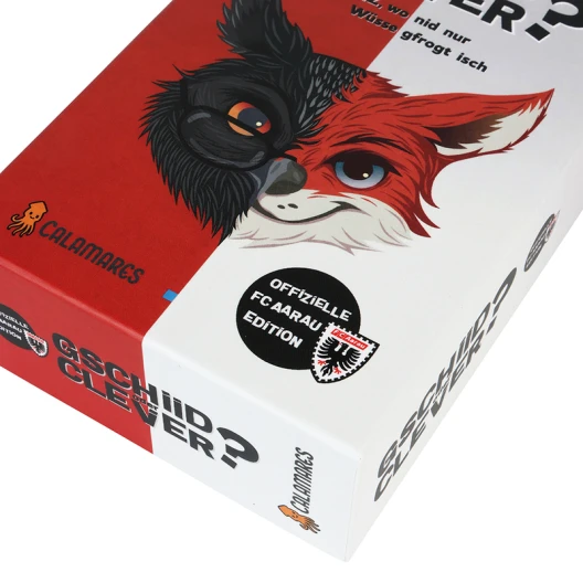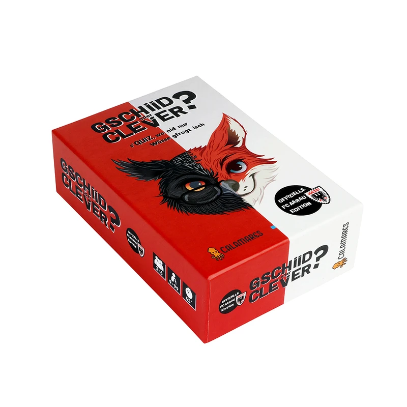Gschiid oder clever? – die offizielle FC Aarau Edition ist mehr als ein klassisches Quiz: Es ist eine Liebeserklärung an den FC Aarau. Mit über 600 Fragen rund um Spiele, Spieler, Legenden, Kuriositäten und unvergessene Momente aus der Geschichte des FCA fordert dieses Spiel nicht nur dein Wissen, sondern auch dein taktisches Geschick.